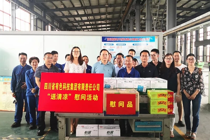 2017.07.147月13日,按照集團黨委安排,集團公司黨委委員、紀委書記劉文林代表集團公司黨委、工會率集團群團工作部人員組織開展了“送清涼”到生産、科研一線慰問活動。在烈日酷暑的炎炎夏日為科能公司、研究院、金源公司、金砂公司在高溫酷暑下堅持工作的一線職工送上礦泉水、綠豆、藿香正氣水、風油精、夏桑菊沖劑等...